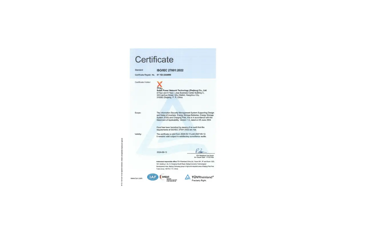 SolaX adotta i più alti standard in materia di gestione della qualità, sicurezza e affidabilità, supportati da certificazioni riconosciute a livello internazionale.